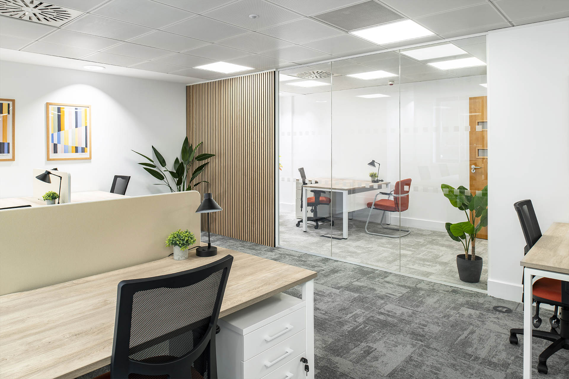 Our move-in ready plug-and-play offices come complete with quality furniture, a sleek integrated kitchen, designed to get your business up and running from day one. Each fully fitted office has been thoughtfully designed to support a range of working styles, with efficient layouts that balance both meeting rooms for collaboration and dedicated office space for individual focus.